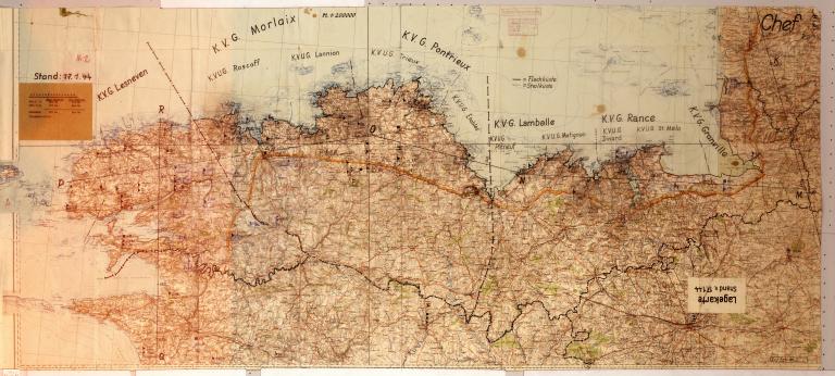 Dans l’organisation militaire allemande, le secteur défensif côtier de la région de Brest (Küsten-Verteidigungs-Abschnitt B) s'étend des communes littorales de Plouescat à Plomodiern (Pentrez et plage de la Lieue de Grève). Il regroupe 4 groupes défensifs côtiers (Küsten-Verteidigungs-Gruppe) :