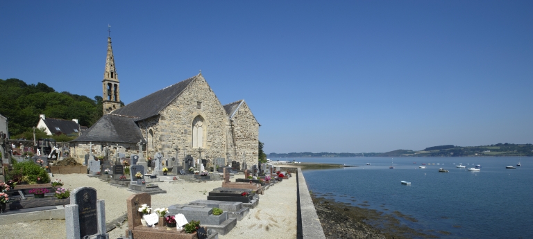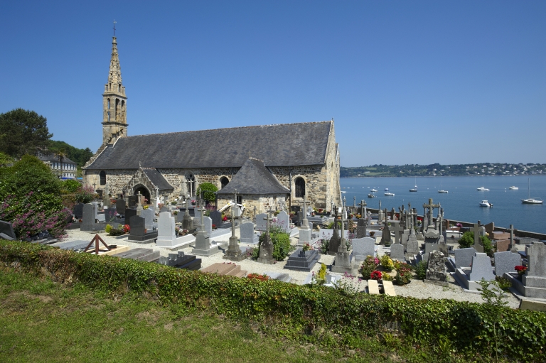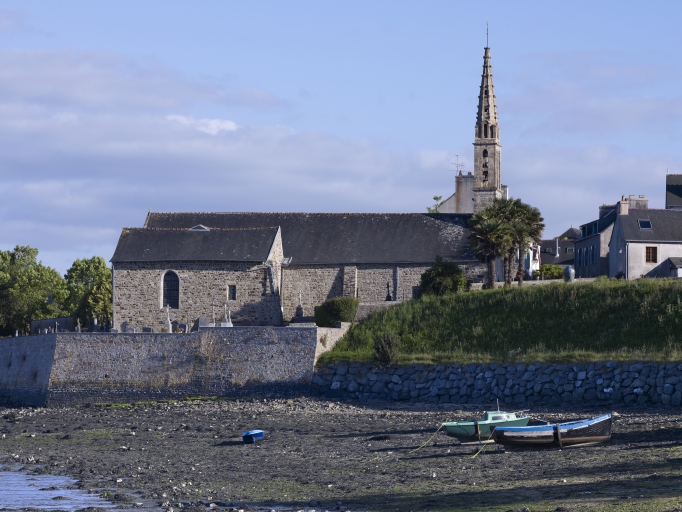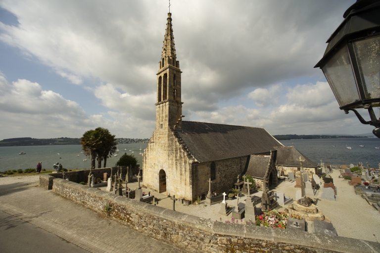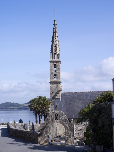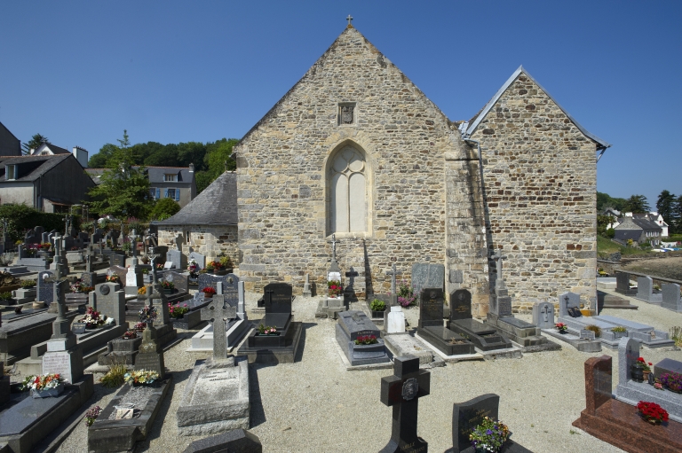 Dans sa structure, l´édifice semble remonter à la fin du 15e ou au début du 16e siècle. De cette époque datent le porche sud, l´arc diaphragme séparant la nef du choeur, des vestiges de sablières de la nef, la charpente (poinçons, entraits, blochets) ainsi que quelques baies bouchées (nef, chevet). La pierre encastrée dans la partie supérieure du chevet porte la date de 1652 ainsi que les armoiries de Pierre Tanguy, abbé de Landévennec. La façade occidentale et le clocher sont érigés en 1659 et portent les mêmes armoiries que le chevet. La date de 1699 figurant sur le pignon du porche correspond à un remaniement. La sacristie a été rajoutée en 1740. Le portail monumental remonte à la seconde moitié du 17e siècle. L´ensemble a été fortement restauré à plusieurs reprises, notamment au 19e siècle et en 1969.