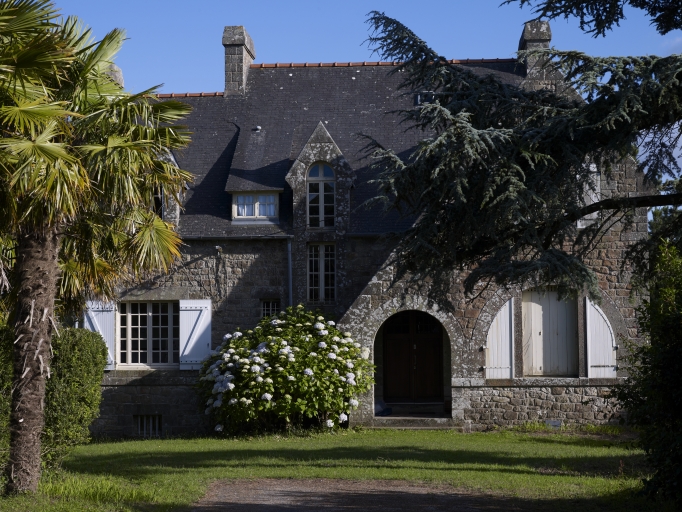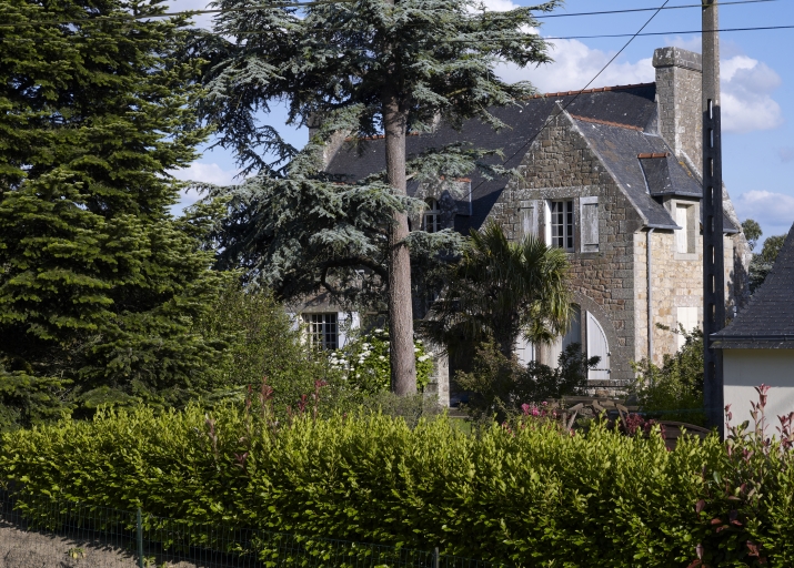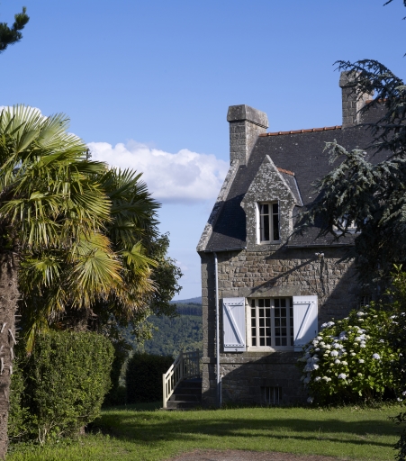Construite au-dessus de l'Aulne, maison à deux corps ayant comme motif récurrent le triangle : charpente avec noue formant fronton à l'étage de comble ; fenêtre ornée d'un fronton triangulaire en granite au premier niveau ; léger avant-corps en façade nord de forme triangulaire (entrée de la maison et accès à un vestibule). Pierres de taille en granite. Rez-de-chaussée légèrement surélevé. Bow-window en rez-de-chaussée en façade sud. Balcon. Trois cheminées. Plusieurs ouvertures plein-cintre.