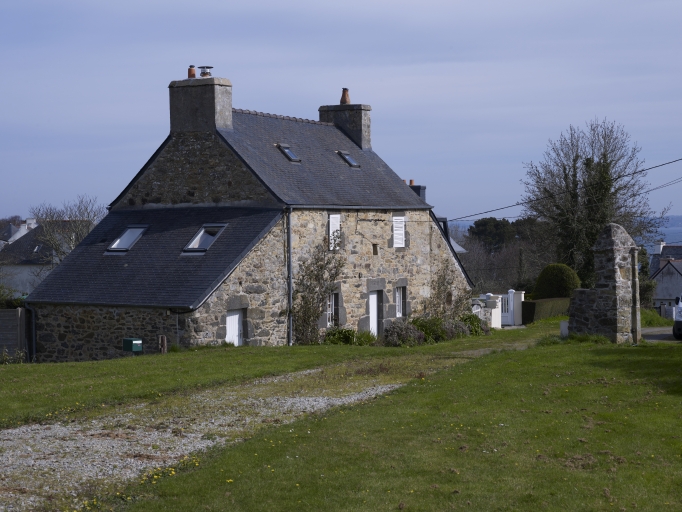 Ferme, actuellement maison, composée d'un rez-de-chaussée, d'un étage carré et d'un étage de comble couvert d'un toit à deux versants. Deux pièces à feux. Façade sud ordonnancée. Appentis latéraux accolés à chaque pignons. Le linteau de la porte d'entrée est gravé en méplat (P : M : 1710). Encadrement des ouvertures en kersanton.
