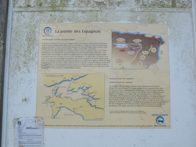 La défense de la ville-arsenal de Brest contre une attaque maritime repose avant tout sur l´artillerie de côte. L´effort principal a lieu entre le milieu des années 1870 et la fin des années 1890 : on trouve des batteries « de rupture » et batteries « de bombardement ». Afin de rendre le goulet de Brest définitivement infranchissable à une flotte ennemie, l'implantation de batteries dites « de rupture » armées de canons de gros calibre est étudiée dès 1876. Onze batteries de rupture casematées ont été construites en rade de Brest entre 1883 et 1888 au prix, pour certaines, de travaux gigantesques de déroctage. La presqu´île de Crozon compte 5 batteries de rupture casematées disposées sur l'îlot des Capucins (dans le rocher), sur les pointes de Cornouaille3 (sous la batterie vaubanienne), à la pointe Robert (dans la falaise sous la batterie réorganisée en 1862), à Pourjoint (dans la falaise) et à la pointe des Espagnols (sous la batterie vaubanienne). En 1914, le goulet de Brest compte encore 90 canons dont 38 d'un calibre de 32 cm répartis sur dix positions et 27 « nouvelles » batteries !