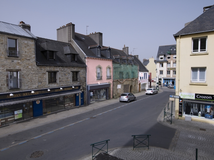 La commune de Crozon s'étendant jusqu'au milieu du 19e siècle sur près de la moitié de la presqu'île, sa ville est longtemps restée le centre urbain de référence du territoire. Les fonctions commerciales, religieuses et administratives en ont fait un lieu d'échanges et de services qu'il a conservé jusqu'à aujourd'hui. Siège de la paroisse et de la seigneurie de Crozon depuis le 11e siècle, la ville s'est constituée à la croisée de plusieurs routes : celle de Camaret, du Fret, de Morgat et de Châteaulin dite aussi "route royale de Quimper". Le cadastre ancien montre déjà un bâti dense, au caractère urbain, avec un parcellaire étroit hérité du Moyen-Age. En 1830, l'agglomération s'organise autour de deux places et de trois rues. La place centrale est occupée par l'église paroissiale qui donne, au sud, sur la place du marché (actuelle place du général de Gaulle) et le presbytère. Autour de ce noyau ancien se regroupent des maisons de notables (maisons nobles, maisons de marchands, de notaires...) dont le plus ancien témoin conservé à ce jour date du 1er quart du 16e siècle (ancien "manoir de Pergamou", 23 rue de Reims). D'autres maisons de notables sont à l'état de vestiges (1 rue de Poulpatré, 1 rue de Reims), parfois sous la forme d'un simple blason remployé (4 rue de Poulpatré). Sous l'Ancien Régime, c'est aussi sur la place de l'église, à l'angle de la rue Poulpatré et de l'actuelle rue Anne de Mesmeur, que siègeait le tribunal seigneurial du Comté, à l'emplacement de l'ancienne mairie reconstruite en 1883 (4 rue Anne de Mesmeur). Dans la maison voisine (4 rue de Poulpatré), un hôpital est fondé au début du 18e siècle par René-Marie de Kerlenguy (seigneur de Poulpatré), avant d'être détruit en 1910 et remplacé par un immeuble. Dans les rues adjacentes étaient établis marchands, notaires, notables et artisans dont quelques logis subsistent, plus ou moins bien conservés (11, 13, 20 rue de Poulpatré, 10 et 17, 30 rue Alsace-Lorraine, 7 rue de Reims). A l'ouest de l'église, sur la place de Bretagne, étaient établies plusieurs forges liées aux chantiers navales (1 rue de la Chalotais) ainsi que l'ancien hôtel de Lignaroux fondé en 1588 par une famille de notaires, puis très remanié aux cours des siècles. Au-delà de cette place, la rue de la Chalotais en direction de Morgat et celle d'Alsace-Lorraine vers Camaret sont encore très peu construites en 1830. Jusqu'en 1780, le cimetière de la paroisse entourait l'église avant d'être transféré à la périphérie de la ville, à environ un kilomètre au sud-est, sur le placître de la chapelle Saint-Sébastien, à l'angle des actuelles rues Graveran et Sligo. Si cette chapelle ne figure déjà plus sur le cadastre de 1830, son petit cimetière est représenté ainsi que le nouveau cimetière inauguré en 1829 dans la même rue, toujours en place aujourd'hui. C'est à la fin du 19e et au début du 20 siècle que le bâti se développe à la périphérie du centre urbain. Ecoles, hôtels de voyageurs (L'hôtel moderne), commerces, petites maisons mais aussi nouvelles maisons de notable avec jardin, immeubles de rapport sont ainsi construits dans le prolongement de voies existantes, notamment les rues Alsace-Lorraine et de La Chalotais, au sud et à l'ouest de la ville. Celles-ci rejoignent le boulevard de la France Libre qui lie Crozon à Morgat, comme la rue du Porzic. Entre 1920 et 1940, des zones pavillonnaires s'établissent au sud du bourg, entre Crozon et Morgat, englobant dans un large périmètre les hameaux de Landromiou, Kernalbet, Lesquiffinec ainsi que le manoir de Keramprovost. La station balnéaire de Morgat est le dernier maillon qui relie la ville de Crozon au port de Morgat, distants l'un de l'autre de deux kilomètres. A l'ouest de la ville, l'urbanisation absorbe les hameaux du Yunic et du Crénoc et s'étend également à l'est où est transféré le cimetière. Malgré la création d'un nouveau quartier autour de la gare, le nord de l'agglomération reste relativement peu développé. Quelques commerces, entrepots et maisons sont établis sur l'actuel boulevard de Pralognan la Vannoise et rue de Nominoë.