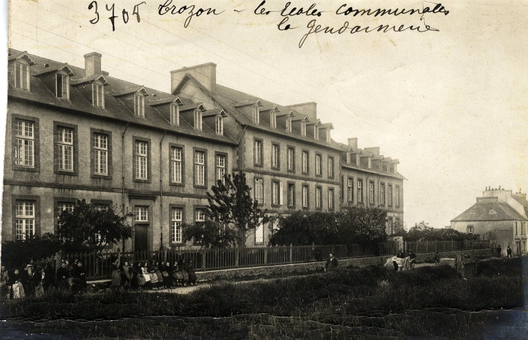 Dès la seconde moitié du 17e siècle, une école tenue par des religieux existe dans le bourg, attestée dans une enquête réalisée par la cour seigneuriale de Crozon en 1715. Les lois scolaires du 19e siècle vont considérablement faire évoluer la situation. Trois ans seulement après la loi Guizot de juillet 1833 qui impose une école publique de garçons par commune, le rapport de l'inspection primaire mentionne deux écoles à Crozon (une de garçons et une de filles). Mais il n'existe pas encore d'architecture scolaire proprement dite, les enfants sont accueillis dans des lieux dont la destination première s'y prête rarement. Il faut attendre 1851 pour qu'une école-mairie soit construite au n°4 de la rue Poulpatré, sur les plans de l'architecte départemental Joseph Bigot. Ruinée par un violent incendie en 1882, elle sera remplacée par une mairie (1883-1884) reconstruite sur son emplacement initial. En 1857, une école congréganiste de filles est édifiée rue Le Graveran (actuelle école Sainte-Anne) par Anne Le Bastard dite de Mesmeur, originaire de Crozon. Pour trouver une solution durable aux problèmes récurrents posés par l'augmentation des effectifs scolaires, le conseil municipal décide la création d'un groupe scolaire sur un terrain acquis à 300 mètres du bourg, en bordure de la route de Châteaulin à Camaret, actuelle rue Alsace-Lorraine. Conçu par l'architecte Armand Gassis en 1885, ce groupe scolaire de très grande taille accueillait l'école primaire, le collège, des dortoirs pour les pensionnaires et la mairie. Il est démoli à la fin des années 1970 pour faire place à l'actuel groupe scolaire Jean Jaurès-Laennec. Dans le même temps, un réseau d'écoles rurales se met en place pour répondre aux besoins d'une population nombreuse et éloignée du bourg. En 1875, une première école de garçons est édifiée à Saint-Hernot sur le Cap de la Chèvre. Elle est agrandie en 1893 d'une classe pour les filles avant qu'une seconde école ne soit édifiée dans le prolongement vers 1910. A Saint-Fiacre, dans le nord-ouest de la commune, une autre école est construite en 1885 pour desservir cette partie du territoire. Enfin en 1910, l'école de Tal ar Groas viendra compléter ce réseau d'écoles établi sur la commune sous l'impulsion des lois scolaires édictées par Jules Ferry (1881-1882). Au total, sur les sept écoles et collèges repérés construits avant 1950 ou reconstruits à l'emplacement d'un établissement plus ancien, quatre ont été sélectionnés pour étude : les deux écoles publiques de Saint-Hernot, l'école publique de Saint-Fiacre et l'école privée Sainte-Anne du bourg. Ont été repérés, le collège Sainte Jeanne d'Arc, l'ancienne école publique de Crozon (détruite) et l'ancienne école de Tal ar Groas (détruite).