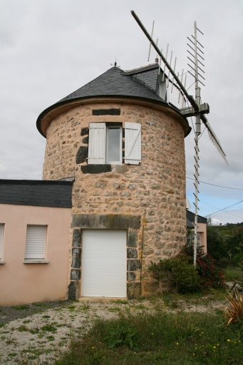 Tous les moulins à vent correspondent au type de moulin-tour, le plus répandu en Bretagne. Ils sont construits avec la pierre locale, en moellon de grès, avec parfois des pierres d'encadrement de baies en granite. Les photographies du début du 20e siècle montrent toujours des toits de chaume, remplacés par de l'ardoise ou refaits à l'identique. Pour éviter que le meunier ne soit emporté par les ailes du moulin lorsqu'elles tournent, deux portes opposées sont percées de part et d'autre de la tour. Lors de la construction des moulins, après le passage du matériel, on bouchait partiellement la fenêtre de l'étage. Des jours éclairent l'escalier tournant dans-oeuvre en pierre.
