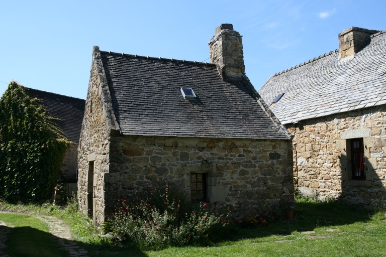Ferme en alignement avec logis encadré de dépendances. Les bâtiments sont accolés suivant une orientation est-ouest des pignons, les murs de façade sont exposés au sud, les murs gouttereaux aveugles au nord. Ensemble en rez-de-chaussée construit en moellon de quartzite avec encadrements en pierre de taille de microgranite (?). Le logis à deux pièces ne possède qu'une cheminée sur le pignon ouest. La petite dépendance de plan massé, construite au sud de l'alignement, comprend une cheminée.