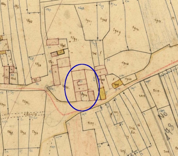 Ancienne ferme édifiée dans la première moitié du 17e siècle. Fenêtre du logis probablement agrandie dans la seconde moitié du 19e siècle. Dépendance construite au sud, au 17e siècle. Seconde dépendance en retour d'équerre au nord, remaniée au 20e siècle. Le cadastre ancien figure une troisième dépendance au sud, aujourd'hui disparue.