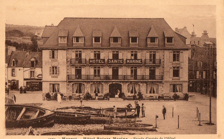 L'hôtel Sainte-Marine est construit à la fin du 19e siècle à l'emplacement de l'ancienne chapelle éponyme dont il remploit une baie à l'intérieur du restaurant. L'architecte Gaston Chabal est chargé d'agrandir l'édifice en 1947. Le toit-terrasse de la façade principale, surmonté de deux pavillons, est alors remplacé par un toit à longs pans pour créer un étage de comble. Des loggias viennent combler la partie en retrait de la façade est gommant ainsi les jeux de saillie et de renfoncement du mur. Ces remaniements crééent sur la façade principale des disproportions entre les minces fenêtres jumelées d'origine et les grandes lucarnes du nouveau toit. Les façades secondaires sont remontées et rehaussées d'un étage. D'autres remaniements ont lieu dans la seconde moitié du 20e siècle, notamment sur les baies du rez-de-chaussée de la façade est.