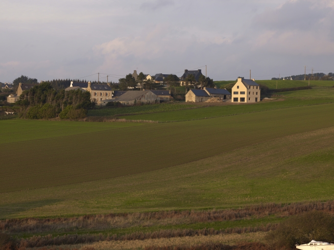 Les fermes sont agglomérées en hameaux plus ou moins importants, de préférence dans les vallées. Quelques rares exploitations sont isolées. Autour du Ménez Luz et du Ménez Caon, l'habitat est absent. Avant le remembrement, le nombre de parcelles à l'hectare était considérable, celles-ci en forme de bandes parrallèles avaient une largeur ne dépassant pas quelquefois 10 mètres. Les témoins architecturaux antérieurs au troisième quart du 19e siècle sont peu nombreux, particulièrement ceux d'Ancien Régime (Elléouët, Kerthomas, Kerampran, Cosquérou, Le Launay, Kérédan ...). Pourtant, des vestiges et quelques rares exemples datés de la seconde moitié du 16e siècle attestent de l'ancienneté de l'habitat rural. La carte de Cassini ainsi que le cadastre ancien montrent un bâti déjà dense à la fin du 18e siècle et au début du 19e siècle. Mais, à partir du 3e quart du 19e siècle, la révolution agricole entraîne un renouvellement de l'architecture rurale : les fermes sont reconstruites in situ ou s'agrandissent avec de nouvelles dépendances ou un nouveau logis construit en alignement de l'ancien. Le logis est surmonté d'un comble à surcroît plus ou moins développé qui atteint parfois l'ampleur d'un étage. Cependant, l'essor le plus significatif de l'architecture rurale a lieu entre 1900 et 1938, à la faveur des lois sur le logement social (lois Strauss, Ribot, Bonnevay, Loucheur). Les logis de ferme sont dans leur grande majorité reconstruits, ou construits en alignement de l'ancien logis, suivant un modèle unique à étage, et à trois travées symétriques. Cette période correspond également à l'évolution du bourg, aux constructions des écoles, mairie, maisons, commerces.