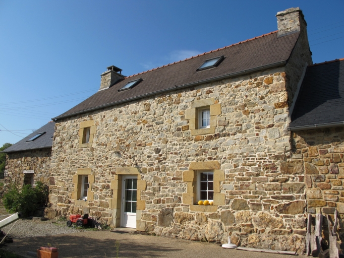 Les matériaux de construction sont les mêmes du 16e siècle au 2e quart du 20e siècle : la mise en oeuvre des murs est en moellon de grès avec encadrement de baies en pierre de taille de granite, parfois en kersantite pour les maisons les plus anciennes. Au sud de la commune, près des gisements de schiste de la côte, quelques bâtiments ont des murs en moellons de schiste (Porlous, Rostégoff). A partir des années 1870, les enduits de façade se multiplient afin de mettre en valeur les encadrements de baies, les chaînages d'angle et les corniches en granite. Cette pratique deviendra systématique à partir de la fin du 19e siècle et du début du 20e siècle. L'importance des dépendances témoigne d'une agriculture plutôt florissante en comparaison de celle de la moitié ouest de la presqu'île : les granges à porte charretière sont nombreuses et les étables sont relativement grandes. Beaucoup de fermes possédaient un poêle à crêpes, aménagé dans un coin de cellier, de laiterie, d'étable ou de logis désaffecté (Penhoat-Rosmadec, Kerdreïn, Penquer). Apparentés à une cuisinière, ces massifs de maçonnerie, associés à une cheminée, sont une spécificité de Cornouaille centrale dont il reste très peu d'exemples.