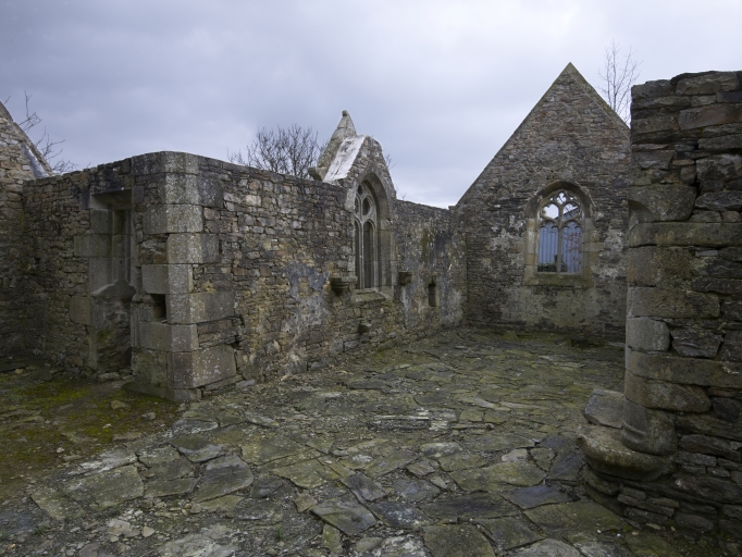 Chapelle de la fin du 15e siècle construite sur les terres des Rosmadec. Deux socles de statue du transept sud portent des blasons : l'un d'un ecclésiastique ; l'autre, aujourd'hui muet, était peut-être peint aux armes des Rosmadec. La mise en oeuvre en petits moellons réguliers du transept sud ainsi que ses baies (avec remplage gothique) et celles du choeur témoignent de l'ancienneté de l'édifice. En 1677, la chapelle est partiellement reconstruite, notamment le pignon ouest et la charpente, à l'initiative du recteur François de Kerscao, du curé Horellou et du fabricien Jacques Le Monze dont le nom figure sur une pierre remployée à la croisée du transept et sur le pignon ouest, avec la date. C'est sans doute à cette époque que la baie du transept sud est partiellement bouchée pour mettre en place un retable. La fenêtre percée dans le mur sud du choeur est transformée en porte pour accéder à une sacristie construite après 1831, autrefois couverte en appentis. Les ruines de la chapelle ont été consolidées en 2000.