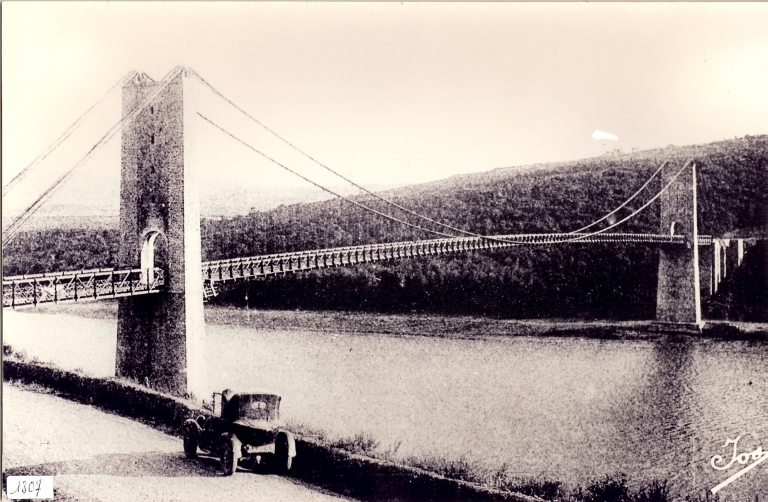 Premier ouvrage : pont suspendu à deux piles principales d'une longueur totale de 272 m portant un tablier rigide avec chaussée et trottoirs de 4.50m de large ; suspension formée d'une trentaine de câbles paraboliques en fil d'acier ; la hauteur laissée libre pour la navigation est de 30 mètres au-dessus des marées d'équinoxe. Ouvrage actuel, en service jusqu´en 2011 : pont suspendu à deux piles en maçonnerie, tablier en fonte, superstructure en béton armé.