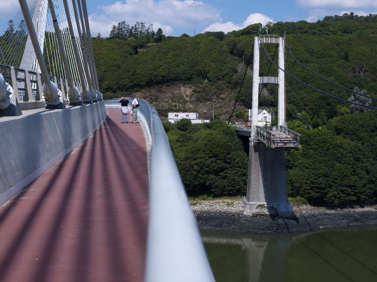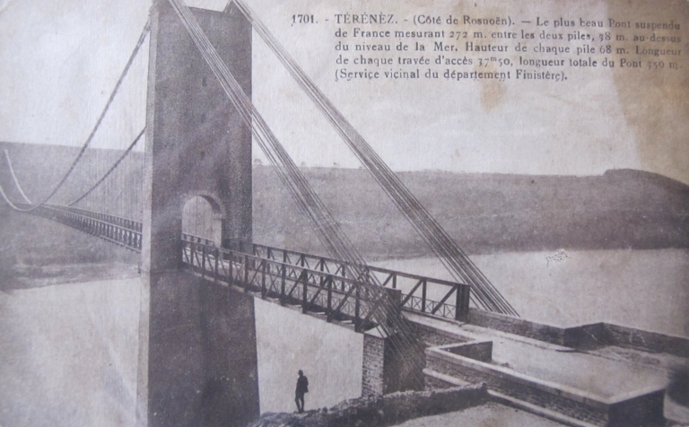 Le premier ouvrage, très moderne pour l´époque et connu par les documents anciens et notamment des photographies, était un pont suspendu à deux piles principales en granite et kersantite. Le pont actuel (1951) dont la superstructure en béton armé est dans un état de conservation critique, sera remplacé par un nouvel ouvrage. Projeté depuis 1998, son achèvement est prévu pour 2011. Le pont actuel sera démoli, à l´exception d´une culée transformée en belvédère. En un siècle, le site de Térénez a été marqué par trois réalisations majeures du génie civil destinées à désenclaver la presqu'île de Crozon.