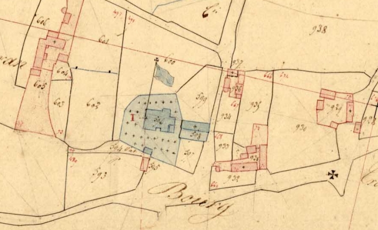 Parties constituantes non étudiéeséglise paroissiale, presbytère, école, mairie, maison