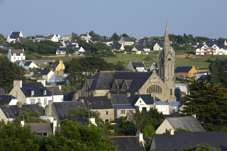 Un prieuré dépendant de l´abbaye de Daoulas est attesté à Camaret dès la fin du 12e siècle. Le petit bourg, établi à distance du port et du quartier maritime du Notic, bien plus important et peuplé, ne comptait, comme le montre le cadastre de 1831, que quelques maisons bâties près de l´emprise foncière que formaient l´ancien presbytère et l´église, édifice reconstruit, selon Peyron et Abrall, vers 1742 par des notables locaux Joseph Torrec de Bassemaison et Jean Téphany. De plan en croix latine, avec nef sans bas-côtés et pourvue d´une sacristie également bâtie au milieu du 18e siècle, l´église figure, entourée d´un cimetière, sur le cadastre de 1831. En mauvais état après la Première Guerre mondiale, elle est remplacée par l´édifice actuel en 1930, conçu par l´architecte Philippe, de Brest et à l'initiative de Joseph Bossennec, curé, dans un secteur en pleine expansion démographique (pêche, tourisme).