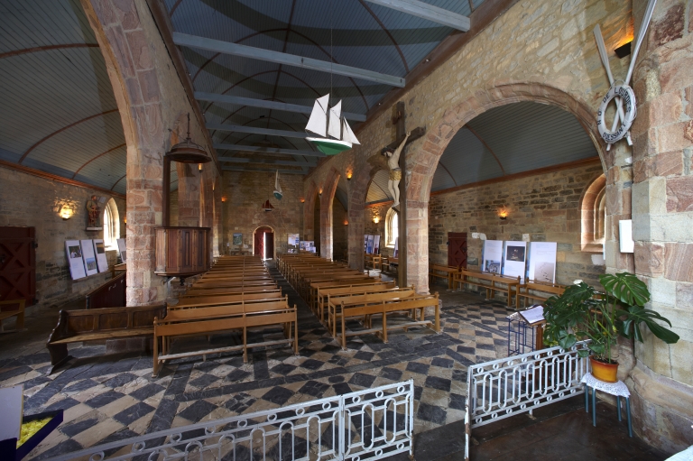 La situation insolite de cette chapelle, la qualité de la mise en œuvre des pierres de taille extraites des carrières situées au fond de la rade de Brest (microdiorite dorée, kersantite gris foncé) et le lien fort qui la rattache, à côté de la tour Vauban, à l´histoire de Camaret, contribuent à lui conférer une place majeure dans le patrimoine départemental. On notera la présence de deux anges adorateurs provenant de l'ancienne église paroissiale et dont la facture, semblable à ceux de l'église de Crozon, peut être rapportée aux productions, notamment aux figures de proue, des sculpteurs de la Marine Royale.