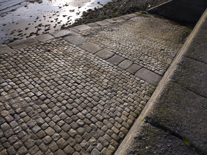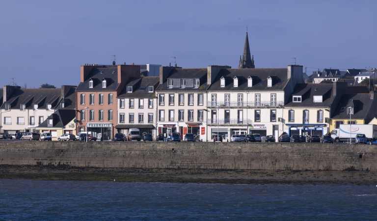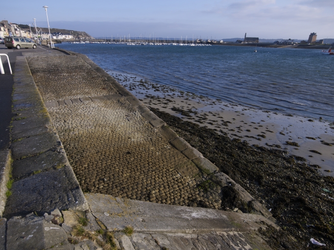 Le quai, long d'environs 350 m, large de 30 m et haut de 6 à 7 mètres est paré et remblayé avec des pierres extraites de la Pointe du Gouin et de l´Aber. Il est composé de quatre cales de lancement de 25 mètres de longueur, inclinées successivement en sens inverse, de 3 bittes d'amarrages métalliques et de 3 autres en granite, accostables qu´à marée haute. Les pierres des cales et le parement sont en pierre de taille. Le front portuaire est jalonné de commerces, d'anciens cafés, d'hôtels, dont certains ont conservé leur façade d'origine, notamment le Café de la Marine, situé au n° 27 et 28, qui à fait l'objet d'une étude.