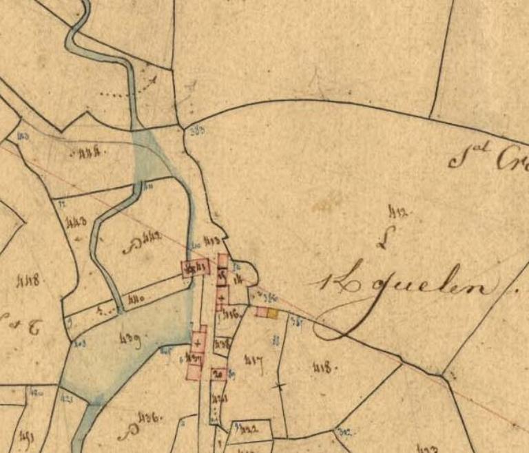 Plounévez-Lochrist. Cadastre napoléonien, section D1 de Kerguelen. Levée par M. Dyèvre, géomètre, 1837, échelle 1/2500 e.