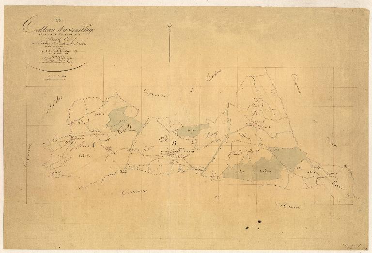 Moulin roux. Etang formé d'une chaussée assez forte longue de 12 coudées ; bouclier et canaux en mauvais état ; chambre d'eau et roue dans l'eau ; plate-forme, pierres tournantes et chomantes également bonnes ; maison où est le moulin, couverte d'ardoises est bâtie en bonnes pierres, longue de 27 pieds, large de 15 et haute de 10 ; cheminée bout nord et 3 portes au midi, couchant et nord.
