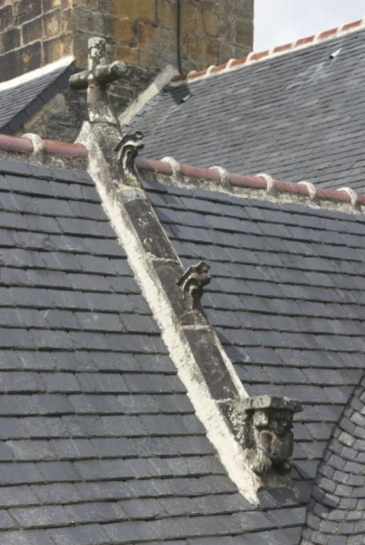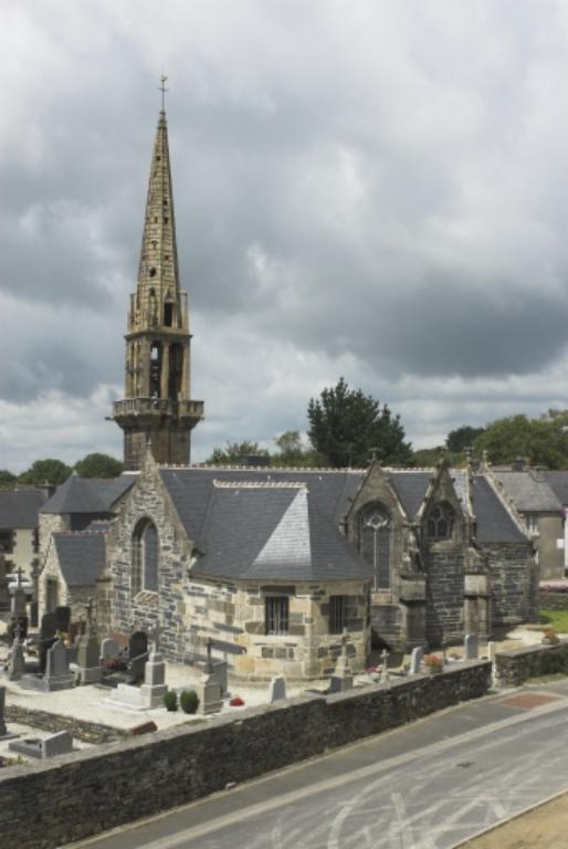 En forme de croix latine comprend une nef à trois travées avec bas-côté sud, un transept et un choeur de type Beaumanoir. Au droit de la seconde travée, au sud, porche ajouré au portail de style flamboyant. Clocher à une galerie et une chambre de cloches.