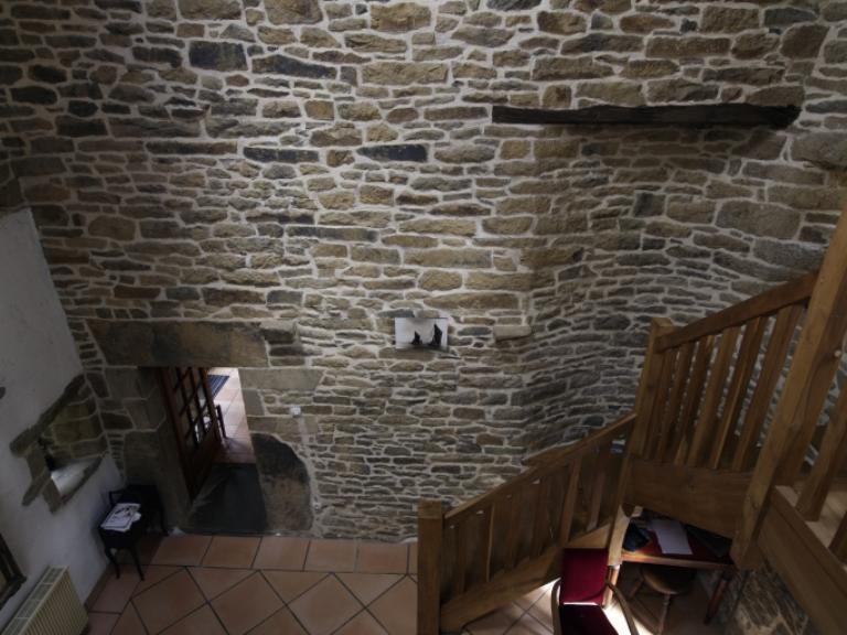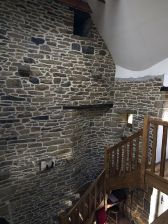 premier logis : Elévation ordonnancée sans travée. Composé d'un rez-de-chaussée, d'un étage carré et d'un étage de comble, ou à surcroît. Façade en pierre de Logonna-Daoulas, encadrements de porte et fenêtres en kersanton. Une porte en demi-cintre, trois ouvertures de petites dimensions. Souche de cheminée au pignon ouest : cheminée en rez-de-chaussée à piédroits en kersanton et linteau en bois et à l'étage. Traces d'escalier en vis (disparu dans les années 1950). Ouverture récente sur le mur gouttereau nord et adjonction d'une véranda. Date et inscription : 1664 IAG.