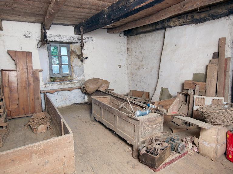 Manoir du 16e siècle, ne porte pas de date, mais les cheminées, identiques en rez-de-chaussée et à l'étage, donnent une indication. Les cloisons du rez-de-chaussée, en bois, datent de la fin du 19e siècle, voire début 20e siècle, séparent une pièce qui était une grande pièce commune. Les portes jumelées de l'étage confirment une division de l'espace révélant deux fonctions : chambre et grenier. La fonction de grenier de l'étage de comble est confirmée par la présence d'un treuil (début 20e siècle).