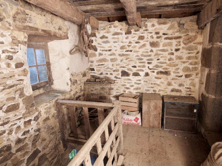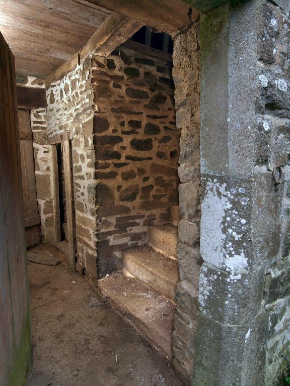 L'escalier a été modifié, probablement au cours du 19e siècle : sur le cadastre de 1825, on constate que l'appentis accolé à la façade nord est à droite et non à gauche. De plus, la mise en oeuvre de la tour d'escalier et de l'escalier, en bois et en pierre, ne correspond pas au reste de l'édifice.
