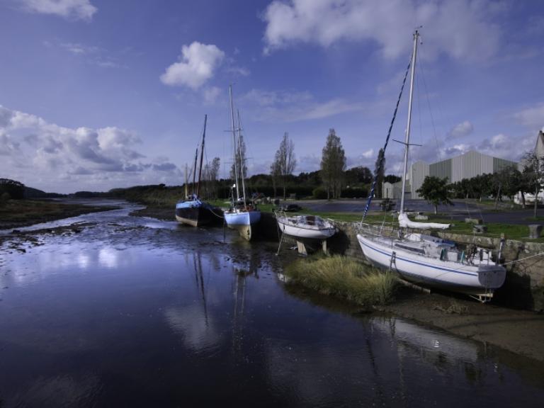 Les infrastructures portuaires sont étonnamment récentes. Jusqu’à la modification du tracé de la voie royale, la circulation passait devant l’église pour emprunter le pont coz ou passage à gué selon les époques. La création d’un nouveau pont en 1847 eu pour conséquence de modifier l’environnement immédiat de l’église, implantée en bordure de grève, en rendant possible l’empierrement entre les deux ponts.