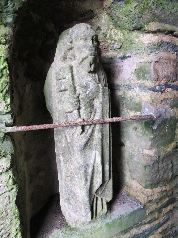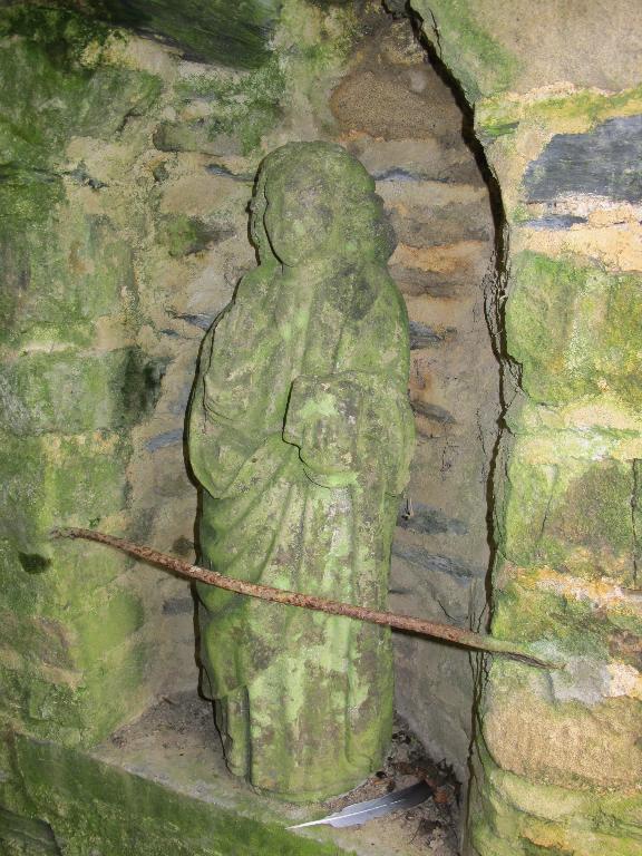 Fontaine de dévotion construite en moellon de schiste, de plan carré, couverte de dalles de schiste. Trois niches intérieures abritent des statues. Fontaine associée à un lavoir à deux bassins en moellon et dalles de schiste partiellement recouverts de ciment au 20e siècle.