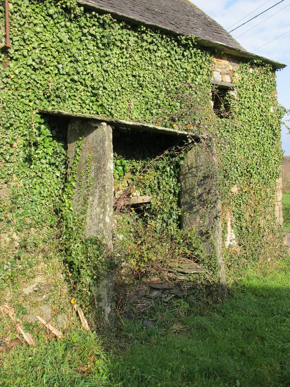 Ancienne ferme composée de deux logis jumelés construits en alignement, l'un de type logis-étable, l'autre à pièce unique. Chaque logis possède un petit comble à surcroît et une avancée au sud, couverte en appentis. Le logis-étable est divisé en deux par un mur de refend, l'entrée de l'étable est protégée par un auvent en dalles de schiste. Au nord, des portes secondaires permettent un accès à la cour arrière. Mise en oeuvre en moellon de schiste et de grès armoricain. Toits à pignon couvert, l'un en ardoise de montagne, à coyaux, l'autre en tuile mécanique.