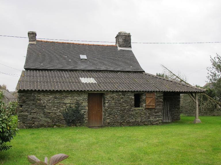 Ancienne ferme construite en moellon de schiste irrégulier. Logis à haut comble à surcroît, avec avancée (apoteiz) en appentis sur la façade sud pour abriter le coin repas (la table et les bancs). Souche de cheminée fictive sur le pignon est. Appentis postérieur et latéral à usage probable d'étable et de soue.