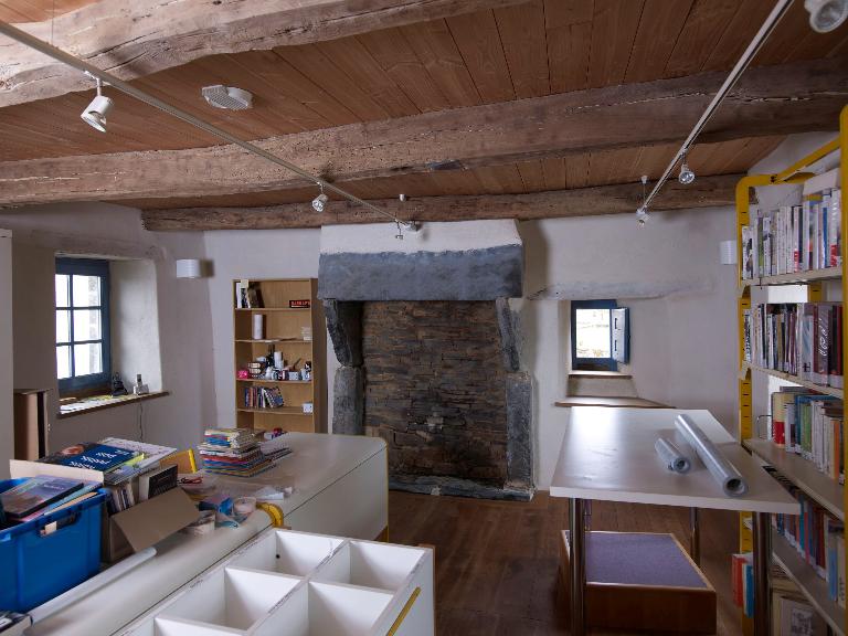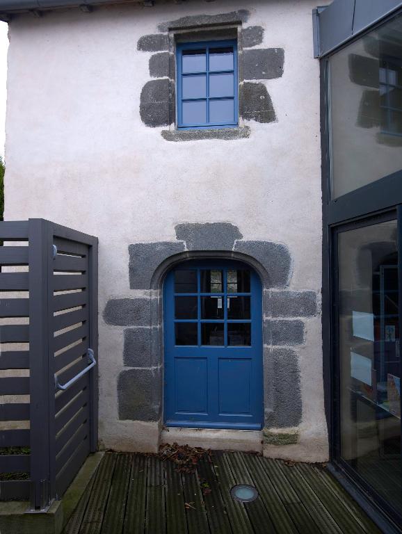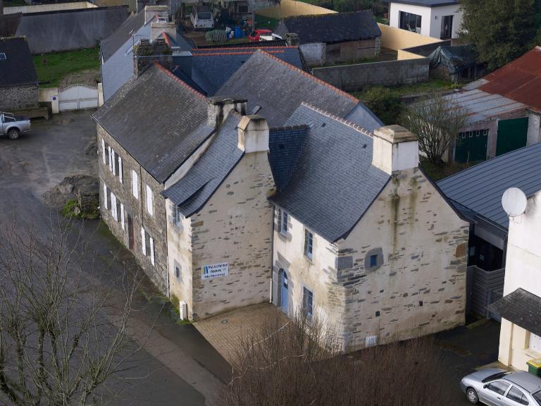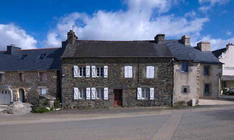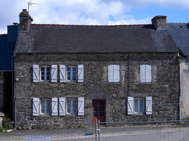 Ensemble de deux maisons construites en alignement, l'une en retrait par rapport à l'autre. Mise en oeuvre en moellon de schiste et de grès, enduit partiel à "pierre vue", encadrement en pierre de taille de kersanton. Le logis initial, de plan allongé, à étage, abrite deux cheminées superposées sur le pignon est. La partie formant avancée sur la façade sud abritait le bureau du notaire et ses archives. Elle disposait d'une cheminée à l'étage, pour l'étude, aujourd'hui disparue. La porte nord donne accès à la cour arrière. Logis secondaire à étage et élévation à travées non ordonnancées.