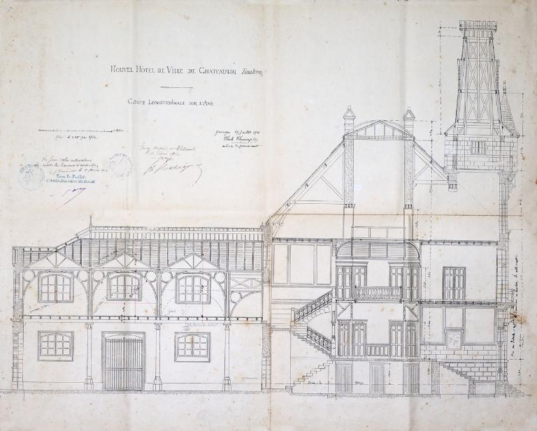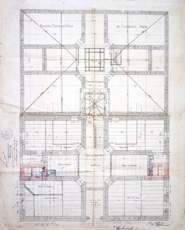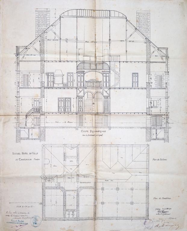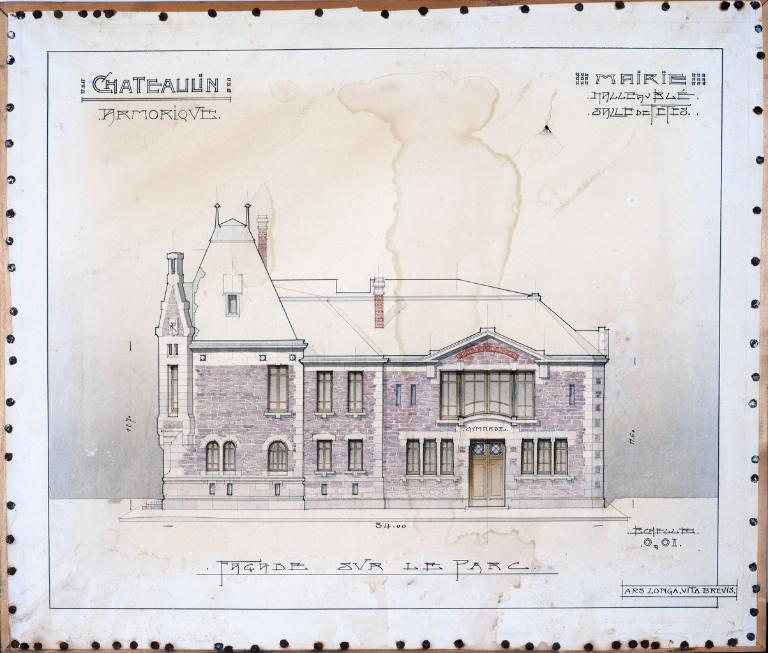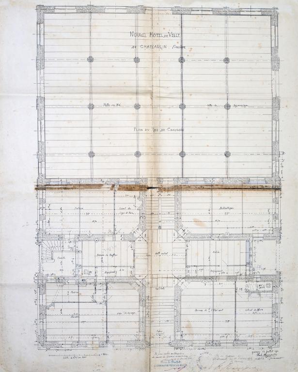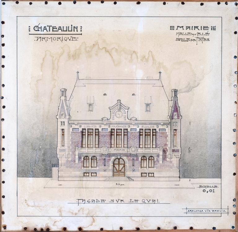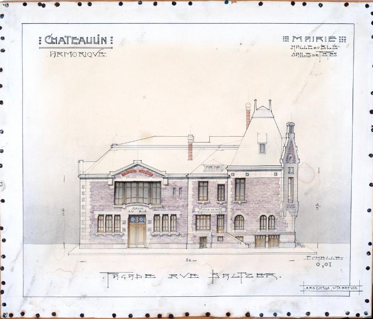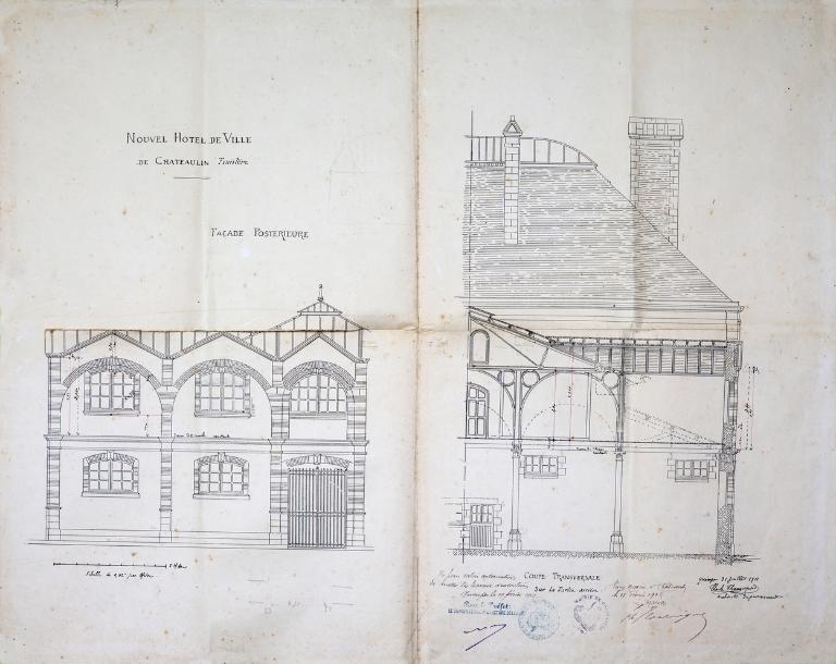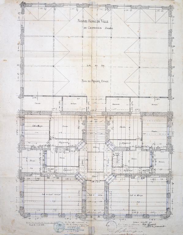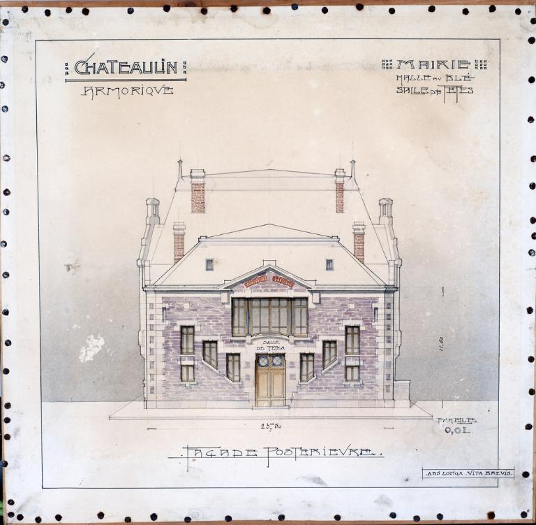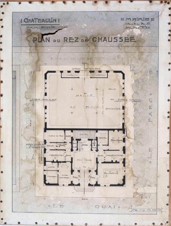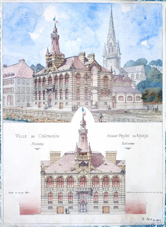 Dès 1910, le conseil municipal de Châteaulin décide de construire une nouvelle mairie à l'emplacement de la halle au blé.
