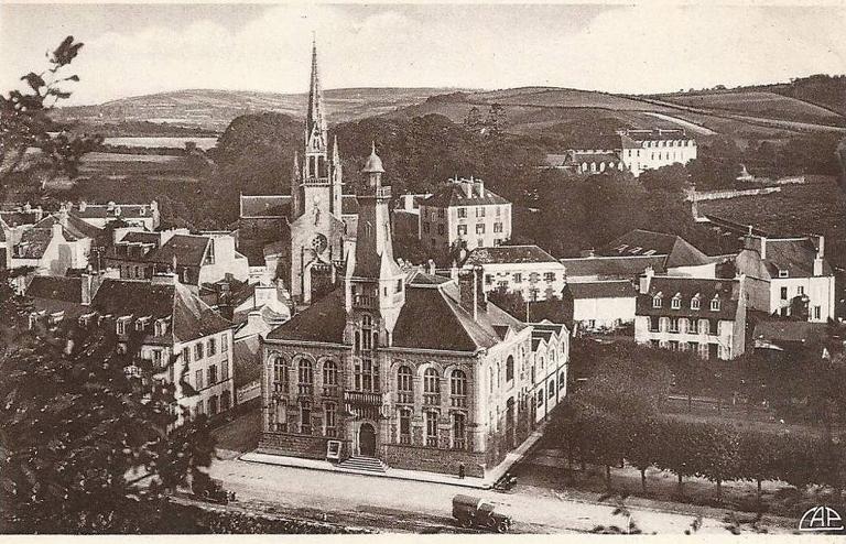 C'est le projet de Charles Chaussepied, architecte des Monuments historiques à Quimper, qui est choisi sur un programme comprenant une halle et une salle de gymnastique (non réalisée). La mairie est partiellement achevée en 1914 ; les travaux sont interrompus durant le Première Guerre mondiale, elle n'est inaugurée qu'en 1925.