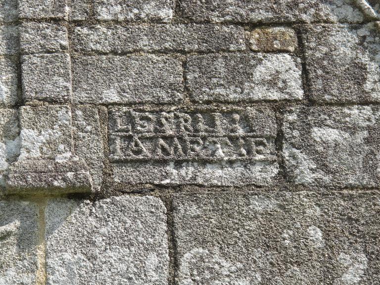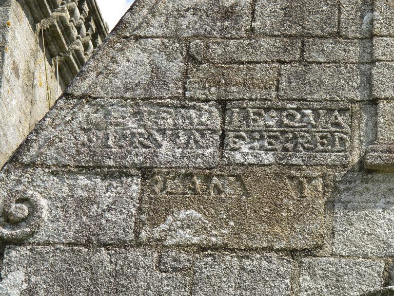 Le porche porte l'inscription suivante : CE:TEMPLE::QUASI:RUINE E RED LESV I JAMET F LAN 1722. Sur le clocher est inscrit : MRE JEAN LE CARRE:ME ALAIN SANQUER : FAB:LAN 1753.