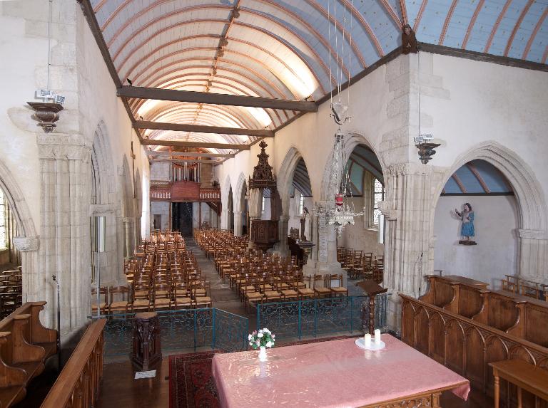 Edifice hétérogène, résultat d'une succession de campagne d'aménagement et de rénovations. De l'édifice d'origine est conservée une partie de la nef, avec ses piliers à noyau central flanqué de colonnettes. On peut rapprocher la construction de la nef au groupe appelé "Ecole de Pont-Croix" qui, au milieu du 13e siècle, étendait son influence sur la Cornouaille.