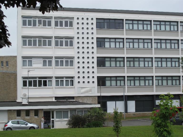 Mais la grande affaire de la décennie reste bien la construction du lycée, d’abord conçu comme une simple annexe de celui de Quimper. Le chantier en est confié à Raymond Lopez, architecte en chef des Bâtiments civils et Palais nationaux, qui remet son avant-projet en mars 1954. La première pierre en est posée le 22 avril 1956 par Guy Mollet, Président du Conseil, et l’inauguration a lieu le 27 septembre 1959. Le bâtiment, qui réunit tous les standards de la modernité, sera publié dès 1957 dans L’Architecture d’aujourd’hui. Il connaîtra au fil des décennies plusieurs extensions, globalement respectueuses du parti initial : en 1982 (Sylvain Malisan, architecte), 1989 (restaurant scolaire), 1994 (centre de documentation et d’information) et 2000 (bâtiment d’enseignement et foyer des élèves), les trois dernières étant l’œuvre de Paul Ruelland et Michel Quéré.