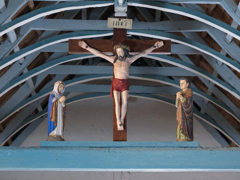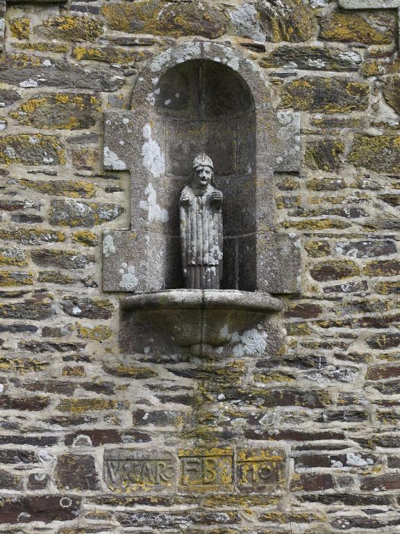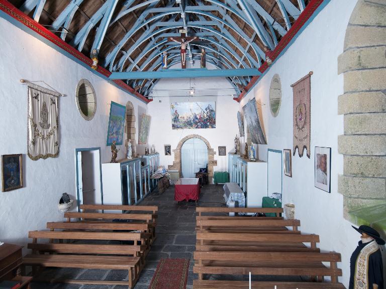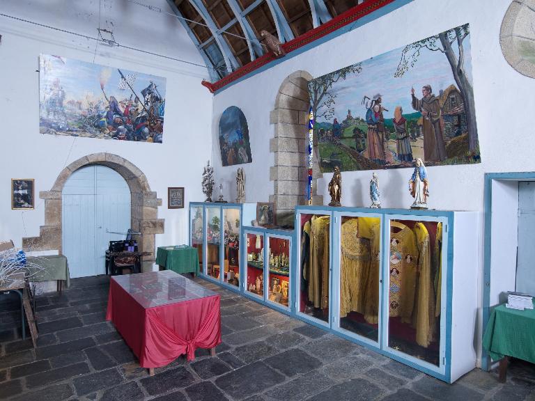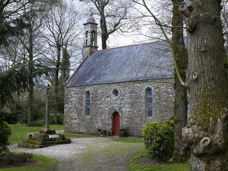 Chapelle du 16e siècle édifiée sur les terres de la baronnie de Trésiguidy (écusson à trois pommes de pin). Reconstruite au début du 18e siècle (porte inscription au dessus de la porte sud : V.CARO FB 1701). Reconstruite pour l'essentiel en 1884 par M. Quéré, curé de Châteaulin qui fait supprimer les bras du transept.