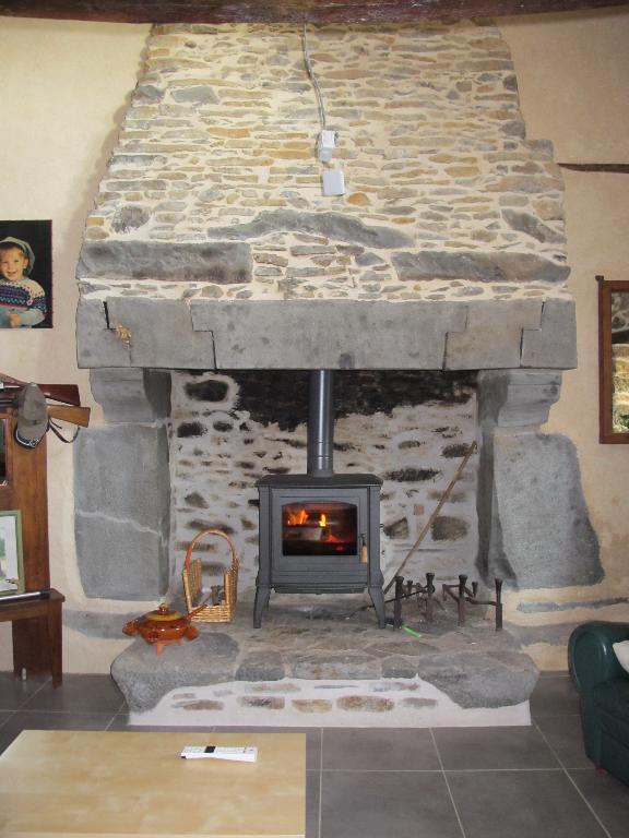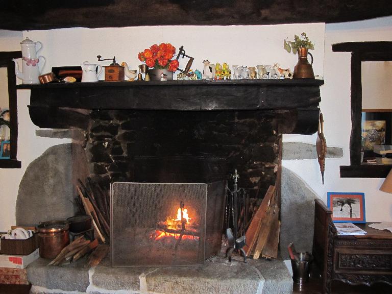 Les linteaux et les corbelets des cheminées sont souvent en bois, parfois en schiste dans les maisons les plus soignées. Les cheminées en granite semblent exceptionnelles (Poulhanol). Des niches sont souvent aménagées de part et d'autre de la cheminée ou dans le contre-coeur. Les pierres d'attache pour les animaux sont très courantes, insérées dans la maçonnerie des façades.