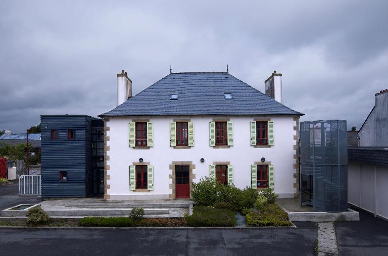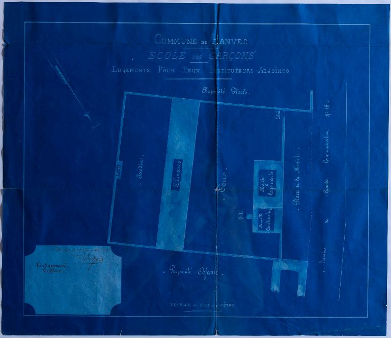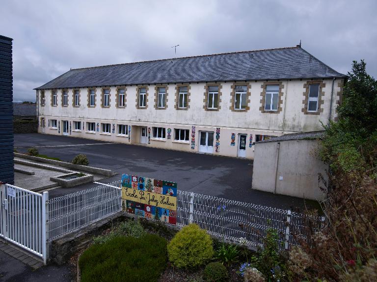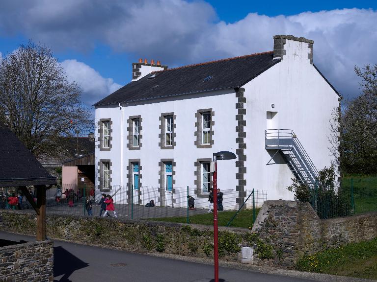 La mairie-école des garçons construite dans le bourg, route du Faou, comprend deux bâtiments séparés par la cour. Sur les plans de 1882, le bâtiment d'habitation est divisé en deux parties qui n'ont aucune communication entre elles : le rez-de-chaussée est réservé aux instituteurs avec une cuisine, deux chambres, deux cabinets et un salon ; l'étage abrite la mairie. En vis à vis, les quatre classes de 50 à 56 élèves chacune ont été conçues au-dessus d'un préau couvert.