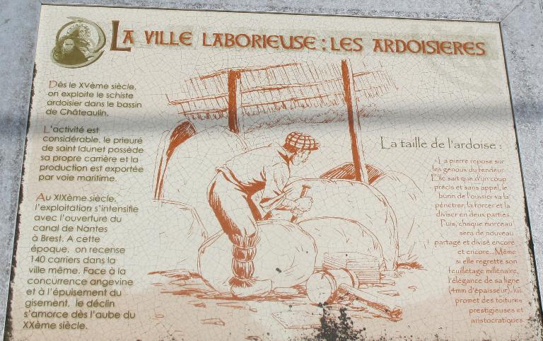 Albert Jouvin de Rochefort, cartographe, écrit en 1672 au sujet de Châteaulin, que « le bourg est considérable pour deux choses : l'une pour ce qu'il y a des perrières d'ardoise très fines qu'on vient quérir des pays étrangers par mer et l'autre pour la grande pesche des saulmons... ». Un siècle plus tard, Auguste Denis Fougeroux de Bondaroy (1732-1789), botaniste, indique que « tout est ardoise dans le pays, les maisons en sont couvertes, les champs en sont environnés, les ponts en sont formés, chaque courtil est fermé de longs et larges quartiers de cette pierre, ce qui donne aux villages un aspect extraordinaire. Vous voyagerez enfin sur le bord d'un petit ruisseau sur des pierres brisées, sur des rochers schisteux, sur une espèce de grès, jusqu'à la sommité que vous voulez atteindre. »