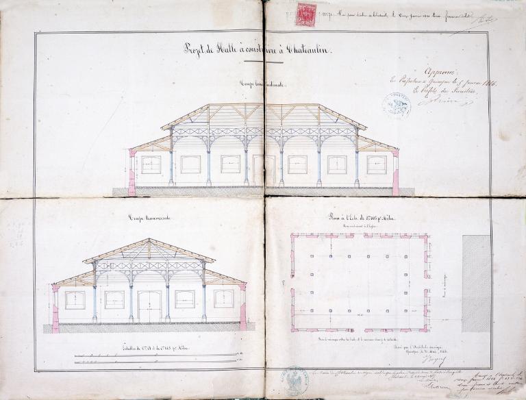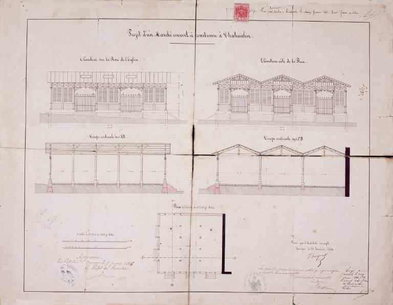 Le projet de marché couvert, signé Jules Boyer, le 25 janvier 1864, est approuvé par le préfet du Finistère le 5 janvier 1866.