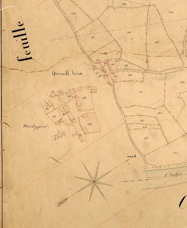 La présence de logis et dépendances de datations différentes rend l'écart de Quimill intéressant. Le logis ancien (17e siècle), quoique remanié, a été transformé en dépendance lorsqu'au milieu du 19e est construit une nouvelle maison. Datée de 1851, elle est cependant présente sur le cadastre de 1847 (rénovation, agrandissement ?). A noter : de nombreuses dépendances de la fin du 19e réhabilitées en logements.