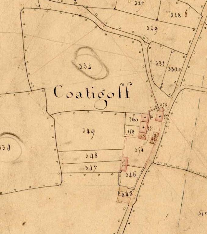 La ferme de Coatigoff a été modifiée. Le logement initial est daté de 1754. En 1844, un rajout est réalisé au nord. Dans les années 1980, c'est un rajout au sud qui est réalisé. Ces agrandissements n'ont pas modifié les volumes ; des ouvertures ont cependant été créées ou modifiées que ce soit en façade principale ou en façade postérieure. Un fournil existait (cadastre 1847), il a probablement disparu lors de l'alignement de la route qui va de la gare à Penmez.