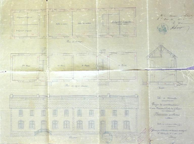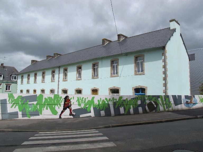 L'avant-projet d'une construction d'école de filles date de 1901. Le projet, adopté par délibération municipale du 23 février 1902. En 1903, le préfet du Finistère émet quelques réserves quant à l'emplacement de l'école jugé trop près des axes de circulations, de l'humidité de la cour de récréation et la promiscuité des classes recevant 136 élèves pour 80 places. L'école est construite dans la cour de la mairie d'alors en 1905.