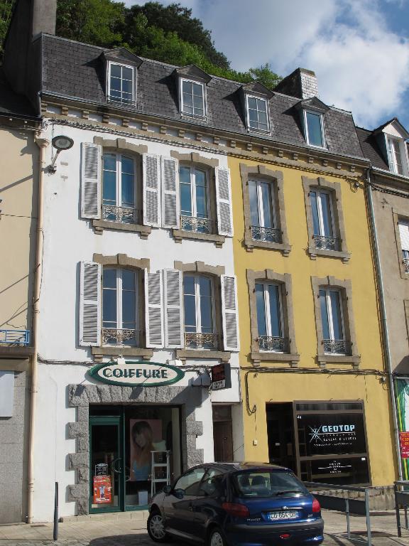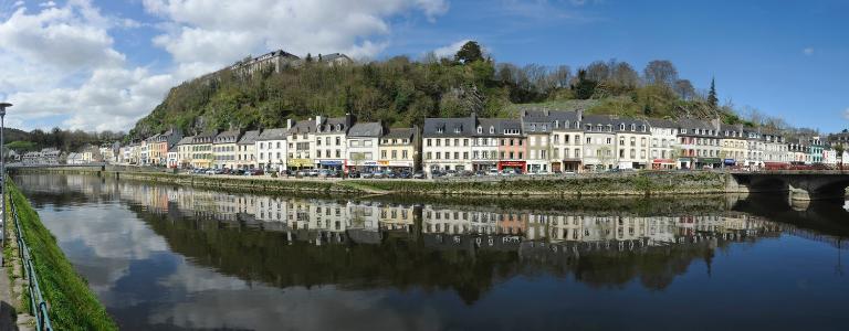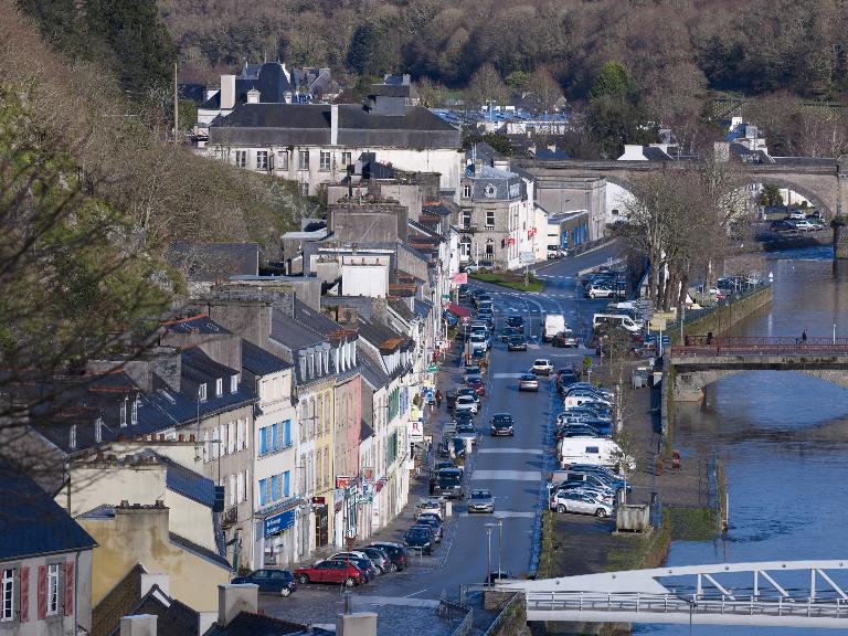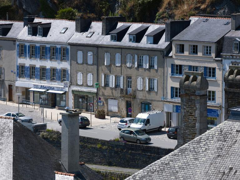 L'alignement des façades que l'on peut observer aujourd'hui est la résultante de deux phénomènes. La construction du nouveau pont en 1822 a eu pour conséquence de modifier l'axe de circulation. Cela a entraîné la destruction d'une partie du bâti situé sur la rive gauche de l'Aulne. D'autre part, suite à la modification du tracé de la route royale n°170, l'alignement du bâti a été décrété par ordonnance royale du mai 1838.