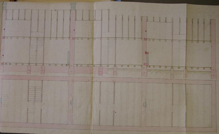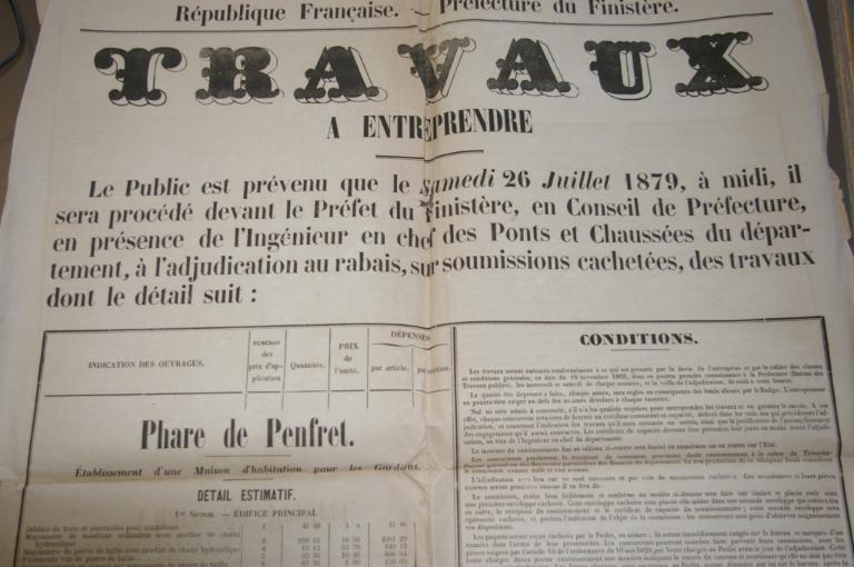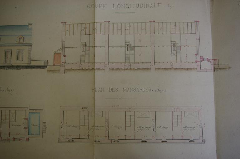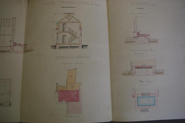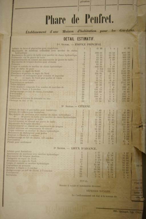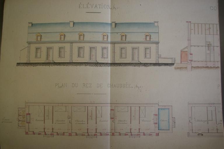 Maison d'habitation pour les trois gardiens - Projet d'éxécution : rapport de l'ingénieur ordinaire, correspondance, devis et cahier des charges, détail estimatif, avant-métré des travaux, bordereau des prix, décision ministérielle, 2 plans. 1872-1879.