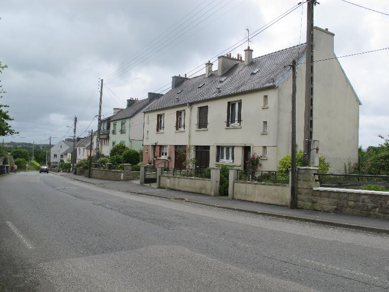 Des maisons de type ternaire avec une fonction de commerce en rez-de-chaussée, on passe à des maisons de lotissements, à un ancien magasin de la Coopérative agricole de plants de pommes de terre (1961), puis à une autre zone de lotissements qui inclus l'ancienne ferme de Pennarun, non intégrée à l'urbanisme mis en place au cours des dernières décennies.