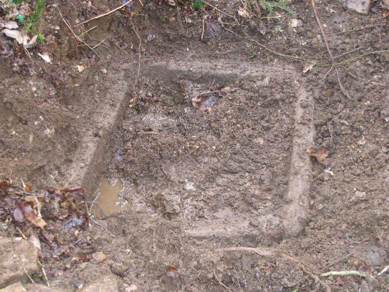 Son bassin, constitué de dalles de schiste, est implanté le long du pignon Ouest et à pour dimensions : 3,30m x 1,85m et 45cm de profondeur. La dalle de scellement est un réemploi de meule courante en granite. Malgré une cassure, on peut observer la trace circulaire du scellement. Elle est placée sur une auge en granite de 1,30m x 0,56m et de 30cm de profondeur permettant de récupérer l'eau servant à la lessive des écheveaux de fils de lin. Une source non maçonnée est située à proximité.