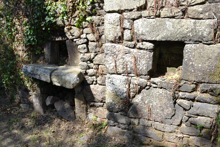 La dalle de scellement en granite de la cuve porte un bourrelet circulaire qui marque l'emplacement de cette dernière qui, en bois, a disparu. Une petite auge en granite est enterrée sous ce socle. Le dallage du sol, constitué également de blocs de granite, entoure de manière précise chacun de ces éléments mobiliers (auge, bassin...).