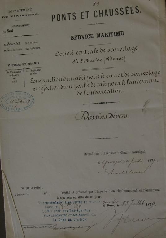 L'abri du canot de sauvetage a été réalisé par une entreprise de Concarneau, aux frais et sous la surveillance des Ponts-et-Chaussées.
